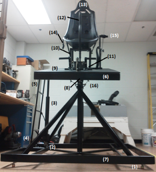 Controller Design and Validation of Dynamic Response for Full-Scale Helicopter Flight Simulator at CCSUD. J. Broderick, F.-S. Wei, and J. W. Hopwood2018 AIAA/ASCE/AHS/ASC Structures, Structural Dynamics, and Materials Conference, Jan. 2018.A research team comprised of students and faculty from Central Connecticut State Universityโs (CCSU) School of Engineering, Science, and Technology has begun the design, production, and testing of a full-scale helicopter flight simulator with a moving platform. This paper presents the system identification, controller tuning and validation, and comparison of simulator dynamics against available helicopter dynamic models during typical flight maneuvers. The purposes for conducting this research include: i) to build a fully functional flight simulator that can be used as a test bed for students research projects; ii) to apply theoretical lessons of control of dynamic systems to a real, tangible electromechanical system; iii) to provide students with hands-on experience on how to design and fly a helicopter. CCSU students have built and programed all of the mechanical and electrical systems. The basic design weight for the simulator is 300 lbs force applied to the pilotseat. The structures are designed to have enough strength to sustain a maximum of 3g and a minimum -1g flight conditions. There are three actuators in place that can be used torotate the platform in the pitching, rolling, and yawing directions. All electrical systems were designed, fabricated, and assembled by CCSU students. The controller was designed and implemented by the students and faculty of CCSU.